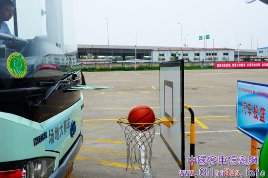 轉(zhuǎn)彎、泊車、繞樁、掉頭這一系列動(dòng)作在駕駛技巧比賽十分常見,但駕駛一款8米長(zhǎng)的公交車完成這些動(dòng)作則充滿了驚險(xiǎn)和刺激,特別是投籃這種“極限”操作,讓整個(gè)比賽充滿了懸念,要求選手必須將誤差減小到毫厘之間。“投籃考驗(yàn)的是選手的判斷能力和停車技巧,尤其是對(duì)距離的感覺和把握必須絲毫不差,才能順利將籃球投進(jìn)!毙鞄煾蹈嬖V記者。