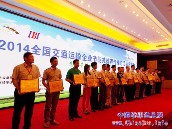 2014年6月14日至15日,中國交通企業(yè)管理協(xié)會主辦的“2014年全國交通運輸企業(yè)節(jié)能減排宣傳推進(jìn)活動總結(jié)會”在中國職工之家酒店隆重召開。上海神舟汽車自主研發(fā)的“公交車空氣動力節(jié)能系統(tǒng)”及“JDS高效真空吸塵車”產(chǎn)品榮獲全國交通運輸綠色循環(huán)低碳建設(shè)優(yōu)秀產(chǎn)品(技術(shù))稱號,“空氣動力公交車示范運營項目”獲“2014年交通運輸企業(yè)節(jié)能減排推進(jìn)活動項目獎”。