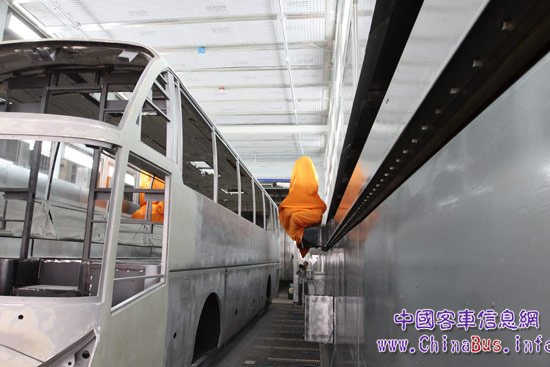 更讓人值得關(guān)注的是,中通客車整車陰極電泳線共計20余道工序,完全優(yōu)于當(dāng)前行業(yè)內(nèi)所普遍選用的電泳工藝流程,甚至高于國際工藝標(biāo)準(zhǔn),整個電泳線的生產(chǎn)環(huán)節(jié)達(dá)到了高度精密和準(zhǔn)確,流程完善及配置程度、智能化水平在行業(yè)內(nèi)絕對處于領(lǐng)先水平。此外,中通客車還引進(jìn)了涂裝機器人進(jìn)行噴涂,有效解決了手工噴涂造成的質(zhì)量不穩(wěn)定、環(huán)境污染大、油漆利用率低等問題,充分保證了客車產(chǎn)品的涂裝質(zhì)量。