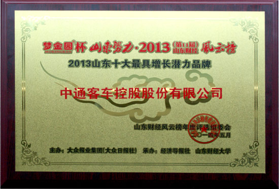 山東財經(jīng)風云榜發(fā)布,中通客車成最具增長潛力品牌