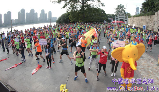 “今天,我們相聚在美麗的閩江公園進行一場充滿激情的樂活跑步,傳播綠色環(huán)保的正能量。也期望通過跑步這種輕松而富有魅力的運動形式,讓更多市民關(guān)注環(huán)保問題,走進陽光,走進自然,以健康環(huán)保的生活態(tài)度,享受多彩生活!遍_跑儀式上,廈門金龍旅行車有限公司的一名普通員工代表跑步者祝福青運,宣誓夢想。