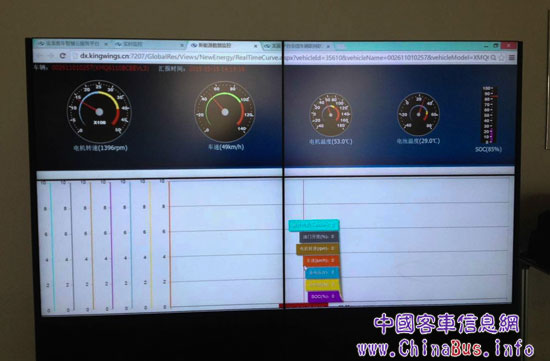在監(jiān)控中心,大金龍售后技術(shù)人員進一步介紹了新能源安全運行管理,他指著監(jiān)控屏說:“利用智慧云服務平臺系統(tǒng)監(jiān)控,可以查看每輛車的實時剩余電量,電氣系統(tǒng)工作狀態(tài),保障人員能及時反饋車況給駕駛員,并評估車輛是否需要進站補電,而且車輛在充電時電池電流輸入狀態(tài)也能實時顯示。”