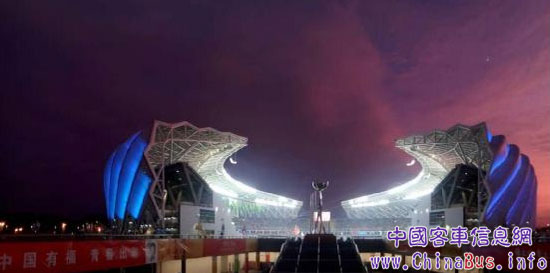 場館內(nèi)外均有金龍客車服務(wù)青運(yùn)通勤的身影