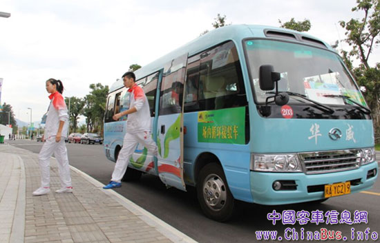 幾分鐘的路程,與這輛班車交匯的已經(jīng)有兩輛同樣的班車。一名運(yùn)動(dòng)員好奇地問(wèn):“大金龍共有幾輛班車在場(chǎng)內(nèi)運(yùn)行啊?”司機(jī)徐濤熱情地回答共有6輛,從早上8點(diǎn)半不間斷運(yùn)行到夜間11點(diǎn)。雖然有些辛苦,但司機(jī)徐濤說(shuō),自己開(kāi)的車能載上未來(lái)世界冠軍,想想就覺(jué)得有價(jià)值。
