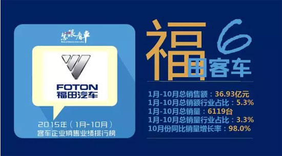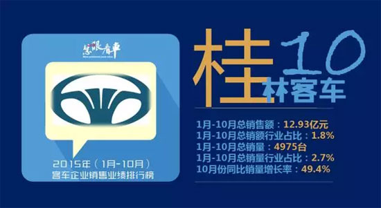 2015年(1月-10月)客車企業(yè)銷售業(yè)績排行榜