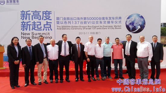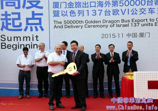 廈門金旅第50000輛客車出口海外發(fā)車慶典暨以色列137輛歐VI公交車交接車儀式