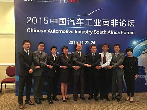 11月23日-24日由中國汽車工業(yè)協(xié)會主辦,北京汽車國際發(fā)展公司協(xié)辦,北汽南非投資有限公司承辦的首屆南非論壇在約翰內(nèi)斯堡舉行。論壇吸引了來自北京汽車國際發(fā)展有限公司、北汽南非投資有限公司、北京福田國際貿(mào)易有限公司、東風(fēng)商用車有限公司、一汽車輛制造南非有限公司、中國重汽南非有限公司、華晨汽車國際貿(mào)易公司、長城汽車股份有限公司、廈門金龍聯(lián)合汽車工業(yè)有限公司、金杯南非有限公司、中非基金、南非巴克萊銀行、南非imperial集團等10余家單位共30多人參加。