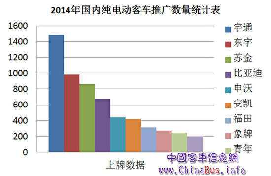 2014年國內(nèi)純電動客車推廣數(shù)量統(tǒng)計表