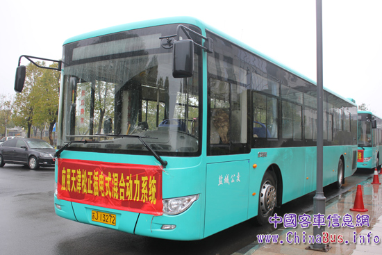 與會(huì)代表乘坐搭載應(yīng)用天津松正插電式混合動(dòng)力系統(tǒng)的公交車參觀鹽城新能源汽車研發(fā)試驗(yàn)基地。
