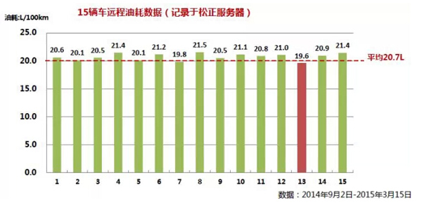 2014年,搭載松正4代產(chǎn)品的40輛插電式混動(dòng)公交車投入鹽城使用,其中15輛公交車裝有數(shù)據(jù)記錄儀,遠(yuǎn)程數(shù)據(jù)顯示至今的平均油耗僅為20.7L/100km,而且是經(jīng)歷了冬天的平均油耗數(shù)據(jù)。其中蘇J13271跑出19.6L/100km最佳成績(jī),最低單月18.46L,見證了中國(guó)大客車進(jìn)入20L的時(shí)代。