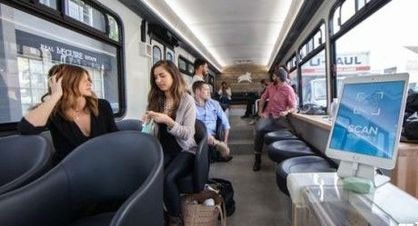 此外,檢票方式上,乘客可以通過掃描自己iPhone或者安卓手機(jī)的二維碼上車,或者如果你的手機(jī)支持藍(lán)牙,則可以自動(dòng)檢票上車。如果你沒有智能手機(jī),則可以將車票提前打印出來。通過Leap公交車的App,乘客不僅可以從某些線下實(shí)體店購(gòu)買飲料,并且你還可以選擇適當(dāng)?shù)胤窒碜约旱膫(gè)人信息,并且有機(jī)會(huì)知道周圍乘客的相關(guān)信息。
