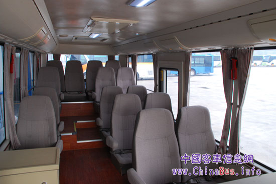 LCK6670EV對標(biāo)國內(nèi)高端商務(wù)車,沿用中通客車經(jīng)典造型,按兩級踏步形式設(shè)計,可以根據(jù)不同用途選裝多種配置不同風(fēng)格的車內(nèi)裝飾以及座椅布置方式,最大座位數(shù)可達(dá)23座。為滿足該產(chǎn)品商務(wù)功能,其車寬相對國內(nèi)外同類產(chǎn)品寬度增加超過20CM,車內(nèi)采用平地板,通道寬敞,專用高檔商務(wù)特座椅更是將乘坐舒適性提升到一流水平;該產(chǎn)品選裝前排專用商務(wù)小桌,自帶220V供電電源,可以滿足商務(wù)辦公需求。
