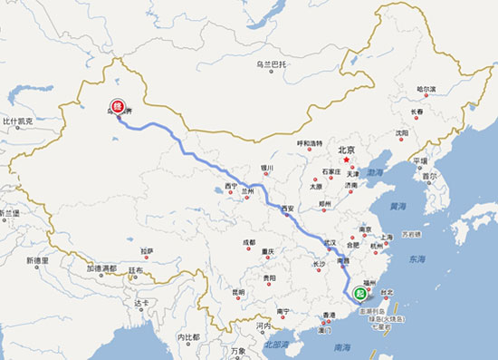 十輛新車,一路東行,從“21世紀(jì)海上絲調(diào)之路”的起點(diǎn),駛向“絲調(diào)之路經(jīng)濟(jì)帶”中轉(zhuǎn)站。這一路上,從東南到西北,恰好貫穿整個(gè)中國(guó)!從地圖上看,福建和新疆是“一路一帶”在中國(guó)的兩極,也是最具發(fā)展?jié)摿Φ摹捌瘘c(diǎn)”和“中轉(zhuǎn)站”,兩個(gè)區(qū)優(yōu)勢(shì)互補(bǔ)明顯,合作前景非常廣闊。