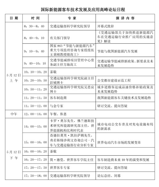 國際新能源客車技術(shù)發(fā)展及應(yīng)用高峰論壇日程