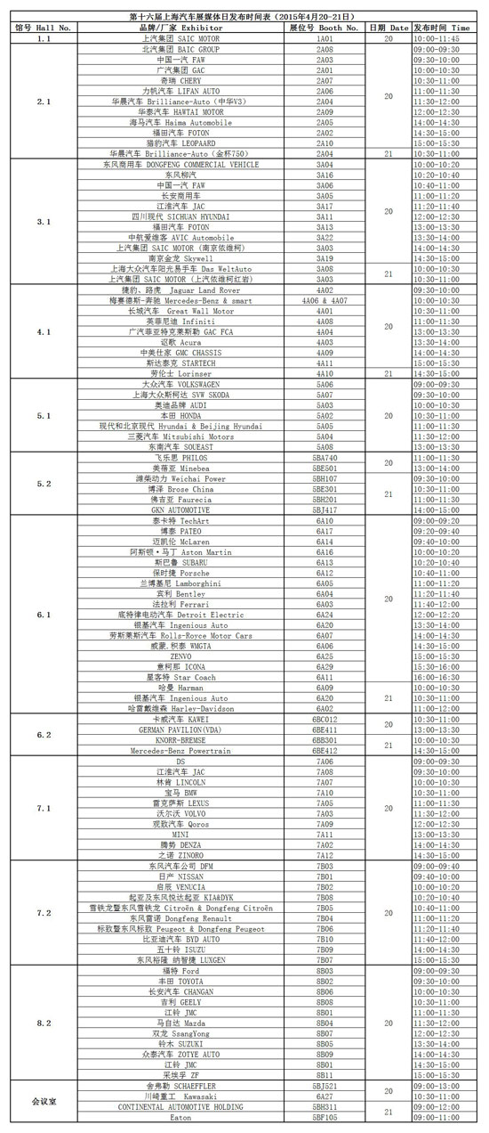 第十六屆上海汽車展媒體日發(fā)布時間表