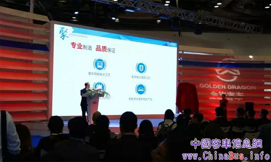 金旅客車(chē)常務(wù)副總經(jīng)理彭東慶為發(fā)布會(huì)致詞