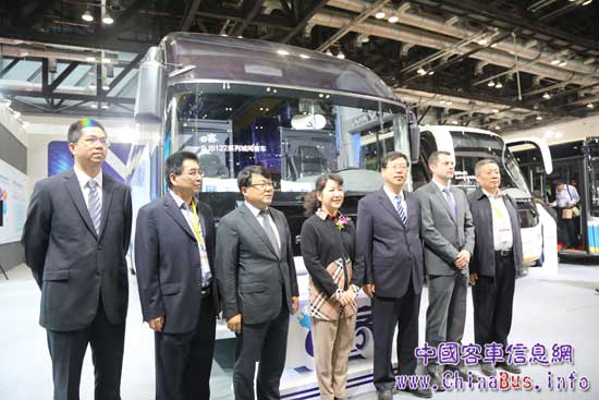 客車行業(yè)高級專家與福田歐輝客車領(lǐng)導(dǎo)在新品e客前合影