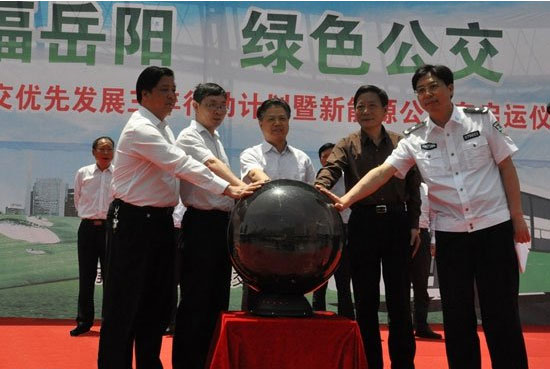 岳陽(yáng)市長(zhǎng)盛榮華(中)等出席新能源公交車(chē)啟動(dòng)儀式
