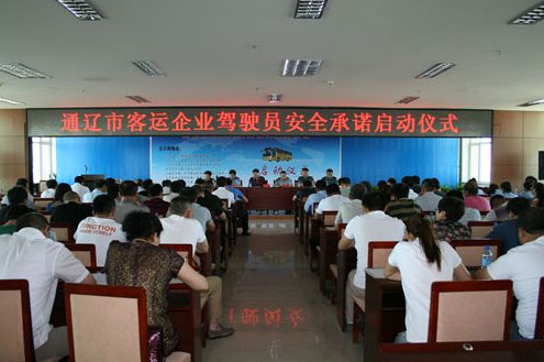 按照《內(nèi)蒙古自治區(qū)交通運(yùn)輸廳轉(zhuǎn)發(fā)國(guó)家安全生產(chǎn)監(jiān)管總局交通運(yùn)輸部公安部關(guān)于在道路客運(yùn)行業(yè)深入開(kāi)展駕駛員安全承諾和安全教育工作的通知》精神,通遼市安全生產(chǎn)監(jiān)督管理局、通遼市交通運(yùn)輸局、通遼市公安局于2015年7月8日,在市交通運(yùn)輸局舉行了全市客運(yùn)企業(yè)駕駛員安全承諾啟動(dòng)儀式并舉辦了安全生產(chǎn)培訓(xùn)工作。啟動(dòng)儀式上市安監(jiān)局秦暉副局長(zhǎng)做了動(dòng)員講話,安全監(jiān)管執(zhí)法代表提出嚴(yán)格倡議、駕駛員代表進(jìn)行了安全承諾宣誓、企業(yè)代表進(jìn)行了承諾,來(lái)自全市各旗縣市區(qū)參會(huì)駕駛員代表進(jìn)行了承諾簽字,并在各客運(yùn)站發(fā)放了《致全市道路旅客朋友的一封信》,倡議廣大乘客對(duì)安全承諾內(nèi)容進(jìn)行有效監(jiān)督,在乘車(chē)過(guò)程中,對(duì)發(fā)現(xiàn)客運(yùn)駕駛員有違反“五不兩確!钡男袨闀r(shí),及時(shí)制止,通過(guò)公布的“12328(96155)”監(jiān)督電話向運(yùn)管部門(mén)進(jìn)行投訴舉報(bào)。
