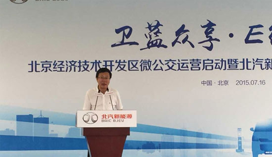 2015年7月16日,主題為“衛(wèi)藍(lán)眾享·E微同行”的北京經(jīng)濟(jì)開發(fā)區(qū)微公交運(yùn)營(yíng)啟動(dòng)活動(dòng)在亦莊創(chuàng)意生活廣場(chǎng)隆重舉行,來自北京市和各區(qū)縣交通系統(tǒng)的負(fù)責(zé)人,共同觀摩了興順達(dá)客運(yùn)公司正式啟動(dòng)200臺(tái)威旺307純電動(dòng)微公交的投放運(yùn)營(yíng)。當(dāng)天,由北汽新能源、青島特來電、冀東物貿(mào)三家公司設(shè)立的充電合資公司建設(shè)的公共綜合充電站也同時(shí)啟用,保障亦莊電動(dòng)微公交的日常充電運(yùn)營(yíng),也可為當(dāng)?shù)仉妱?dòng)車用戶提供便捷的充電服務(wù)。