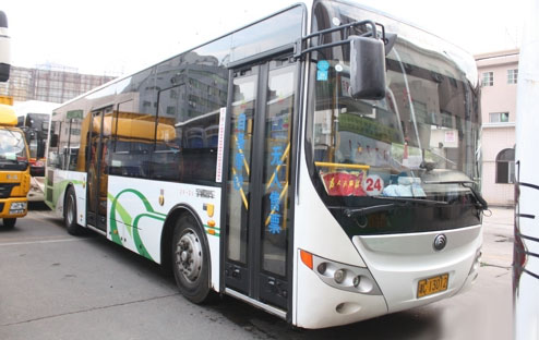 24路混動(dòng)公交背面標(biāo)有“清潔能源車”標(biāo)識(shí)