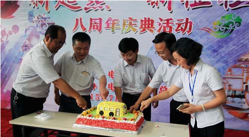 2015年7月23日,中國中車旗下的湖南時代電動汽車股份有限公司(以下簡稱時代電動)迎來了八歲生日慶典,該公司在生產車間舉辦了簡潔熱烈的慶典活動。慶典活動上,員工們一首飽含情感的《八年崢嶸路·感恩攜手情》詩朗誦,為大家講述了電動汽車從“出生”、“蹣跚學步”,到“行走”、“奔跑”的奮斗過程。