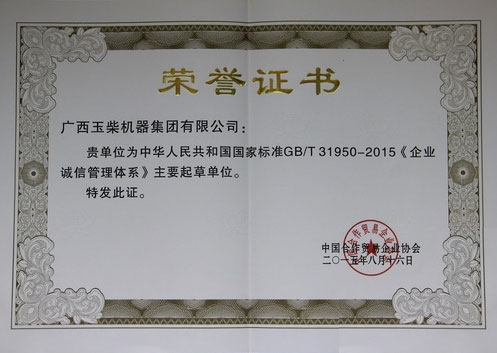 長期以來,玉柴高度重視誠信文化建設(shè),形成了具有自身特色的企業(yè)誠信管理體系,與利益相關(guān)方、合作方在產(chǎn)品質(zhì)量、產(chǎn)品交付、財(cái)務(wù)管理、售后服務(wù)等方面信守承諾、言行一致,得到了普遍認(rèn)可。與此同時(shí),玉柴擁有多年的貫標(biāo)經(jīng)驗(yàn),對各項(xiàng)國家標(biāo)準(zhǔn)的理解和貫徹有比較堅(jiān)實(shí)的基礎(chǔ)。因此,玉柴集團(tuán)被選為此次標(biāo)準(zhǔn)起草的主要單位之一。