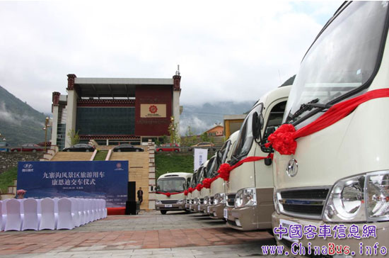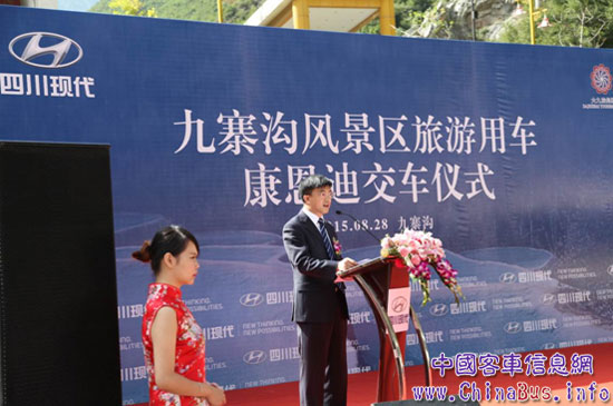 2015年8月28日,四川現(xiàn)代40輛康恩迪成功交付九寨溝國(guó)家5A級(jí)風(fēng)景區(qū)。四川現(xiàn)代銷(xiāo)售本部長(zhǎng)金基成,副本部長(zhǎng)鄧義軍,阿壩大九寨旅游集團(tuán)有限責(zé)任公司九寨溝旅游分公司副總經(jīng)理任躍林及有關(guān)領(lǐng)導(dǎo)出席并參加了交車(chē)儀式,采購(gòu)方代表及全國(guó)主要媒體也應(yīng)邀到場(chǎng),共同見(jiàn)證了這一神圣時(shí)刻。隨后,康恩迪將作為轉(zhuǎn)運(yùn)班車(chē)在九寨溝景區(qū)內(nèi)循環(huán)行駛,為天南海北來(lái)九寨溝風(fēng)景區(qū)旅游的游客提供高端旅游服務(wù)。