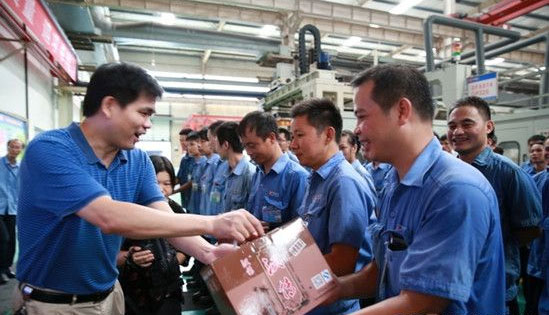 盧道東說,一走進(jìn)玉柴的生產(chǎn)車間,就感受到了玉柴員工熱火朝天干活的干勁。這次市總工會帶來了清涼飲料,就是為了慰勞在這么熱的天氣里仍為玉柴、玉林市的建設(shè)而努力工作的你們。