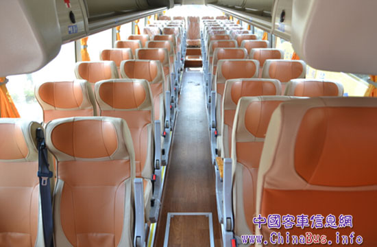 此批車輛配置濰柴3+1黃金動力總成,將濰柴高性能大馬力發(fā)動機、法士特變速箱、漢德車橋通過專業(yè)動力總成匹配計算軟件,固化動力總成應(yīng)用匹配流程,使發(fā)動機做到適配,優(yōu)化整車運行經(jīng)濟性配置,從而使發(fā)動機節(jié)能5%,整車匹配后節(jié)能到達10%,通過新材料的應(yīng)用實現(xiàn)整車整備質(zhì)量的降低,以實現(xiàn)整車的經(jīng)濟性。此外,電子風(fēng)扇的率先應(yīng)用,不僅能實現(xiàn)降噪,提供舒適的乘坐環(huán)境,而且能實現(xiàn)節(jié)約大約5%的油耗,從而造就國內(nèi)最省油的豪華大巴。