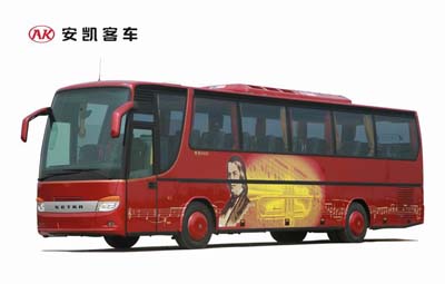 賽特拉*尊榮400(HFF6121K35)是安徽安凱汽車股份有限公司與德國奔馳集團EVOBUS公司10余年合作的代表作品。其外觀典雅時尚,秉承人文理念的流線型設(shè)計引人注目,尤為稱贊的是客車前圍的造型設(shè)計,運用柵欄式進風(fēng)口,有效降低風(fēng)阻系數(shù),符合人體工程學(xué)原理的高靠背豪華商務(wù)座椅,冰箱、彩電、VCD、衛(wèi)生間等一應(yīng)俱全,加上過濾清新裝置的沐浴式空調(diào),保證了車內(nèi)冷、暖溫度分布均勻,車內(nèi)空氣新鮮持久。
