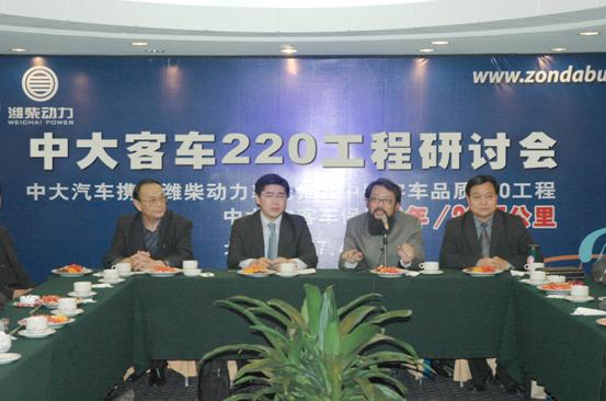 4月18日下午,中大汽車“220工程”研討會在北京德寶大飯店召開。建設(shè)部車輛專家委員會總工程師顧建國,重慶交通大學(xué)教授王建,四川運(yùn)輸管理局總工程師茍樹基、中國客車信息統(tǒng)計網(wǎng)首席分析師佘振清,中國交通報汽車周刊主編周明,濰柴動力營銷公司劉沂部長等數(shù)十位國內(nèi)客車行業(yè)專家以及客運(yùn)企業(yè)負(fù)責(zé)人出席了此次研討會,并提出了對“220”工程的觀點(diǎn)和建議。