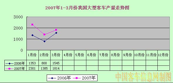 2007年1-3月份我國(guó)大型客車產(chǎn)量走勢(shì)圖