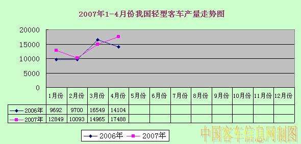 2007年1-4月份我國輕型客車產(chǎn)量走勢(shì)圖