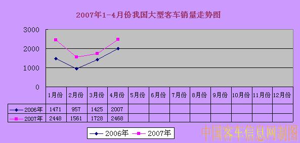 2007年1-4月份我國(guó)大型客車銷量走勢(shì)圖