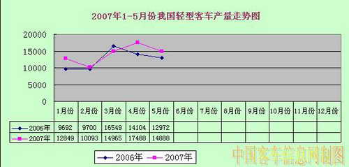 2007年1-5月份我國輕型客車產(chǎn)量走勢圖