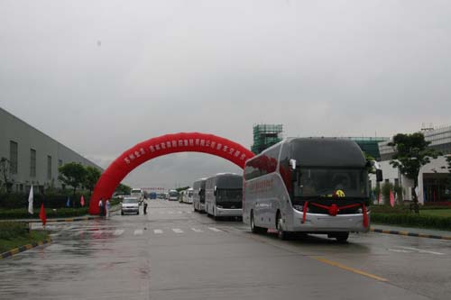 7月10日,“蘇州金龍•吉林歌舞劇院集團(tuán)有限公司交車儀式”在蘇州隆重舉行,吉林歌舞劇院集團(tuán)有限公司訂購的首批三臺SCANIA•HIGER A90高檔豪華客車正式交付運(yùn)營,此款客車是由蘇州金龍聯(lián)合瑞典斯堪尼亞公司共同研制的,為蘇州金龍現(xiàn)有產(chǎn)品中最頂級的車型,達(dá)歐Ⅳ排放標(biāo)準(zhǔn)。蘇州金龍總經(jīng)理吳文文、吉林歌舞劇院集團(tuán)有限公司董事長周國瑞、常務(wù)副董事長藍(lán)景龍、吉林市歌舞團(tuán)副團(tuán)長楊修軍、瑞典斯堪尼亞巴士中國公司銷售經(jīng)理陸芃等出席交車儀式。