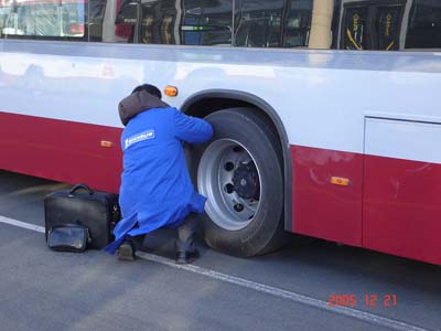 從2005年以來(lái),米其林成立北京公交公司服務(wù)團(tuán)隊(duì),團(tuán)隊(duì)向客戶提供專業(yè)的、全面的服務(wù),其中包括專業(yè)的實(shí)地考察、分析,根據(jù)客戶的實(shí)際需求作出關(guān)于產(chǎn)品及使用的專業(yè)技術(shù)建議。服務(wù)團(tuán)隊(duì)充分了解公交用戶的車輛的運(yùn)行條件,包括車型、路況、輪胎方面等需求,為北京公交公司提供量身定做的服務(wù):如專業(yè)的輪胎檢測(cè)、輪胎拆裝與平衡、輪胎刻溝、輪胎翻新等等。無(wú)論嚴(yán)冬或者酷暑,服務(wù)團(tuán)隊(duì)的專業(yè)輪胎服務(wù)從不間斷!更為重要的是米其林服務(wù)團(tuán)隊(duì)對(duì)輪胎進(jìn)行實(shí)際行駛檢測(cè)后得到的數(shù)據(jù)進(jìn)行分析,向客戶作出專業(yè)建議的同時(shí),令用戶在輪胎行駛過(guò)程中得到最佳平均磨耗表現(xiàn),使輪胎發(fā)揮最大使用價(jià)值。