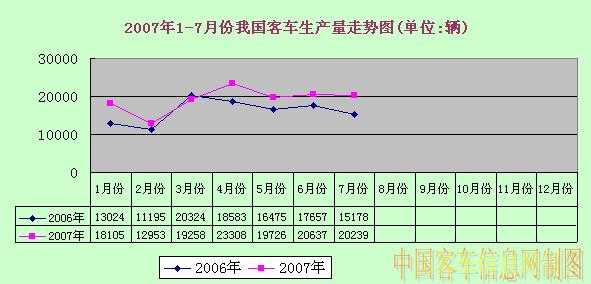 2007年1-7月份我國客車生產(chǎn)量走勢圖