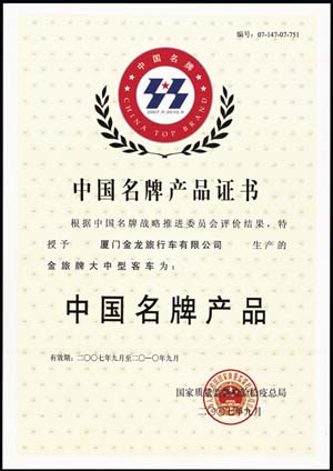 2007年9月11日,"中國名牌"揭曉大會(huì)在人民大會(huì)堂隆重開幕。以穩(wěn)健著稱的企業(yè)廈門金龍旅行車有限公司再次憑借自身強(qiáng)大的綜合實(shí)力入選"中國名牌"之列。