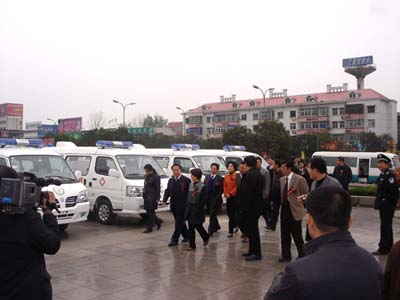 11月16日上午,棗莊市光明廣場(chǎng),60輛嶄新的中順世紀(jì)“中國(guó)健康扶貧工程”專(zhuān)用救護(hù)車(chē)整裝待發(fā)。上午10時(shí),中國(guó)初級(jí)衛(wèi)生保健基金會(huì)暨中國(guó)健康扶貧工程向棗莊市衛(wèi)生系統(tǒng)捐贈(zèng)60輛中順世紀(jì)救護(hù)車(chē)授車(chē)儀式在這里舉行,國(guó)家和山東省、棗莊市,中國(guó)初級(jí)衛(wèi)生保健基金會(huì)領(lǐng)導(dǎo)及棗莊市部分基層衛(wèi)生院負(fù)責(zé)人出席了儀式。會(huì)后,60輛中順世紀(jì)救護(hù)車(chē)奔赴棗莊市近30個(gè)醫(yī)院開(kāi)始上崗。