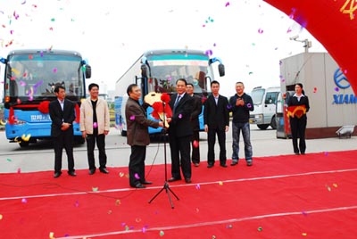 2007年12月17日上午,廈門金龍旅行車有限公司的海滄大客生產(chǎn)基地門前熱鬧非凡, “金旅公司—世邦公司(金旅客車)交接車儀式” 在此舉行。出席此次交接車儀式的有嘉興市道路運輸協(xié)會秘書長兼浙江嘉興世邦商務(wù)旅游客運有限公司金佳鶴董事長、嘉興世邦公司吳貴連總經(jīng)理、嘉興世邦公司毛來法副總理和蔣金順副總經(jīng)理、杭州旅游集散中心長三角客運旅游公司王衛(wèi)國總經(jīng)理以及廈門金旅公司萬邵春副總經(jīng)理、金旅銷售公司張其建總經(jīng)理和陳篤廉副總經(jīng)理等領(lǐng)導(dǎo)和嘉賓。