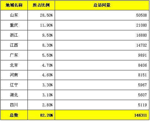 下表列出了訪問量居前10位的統(tǒng)計信息。