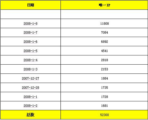 表6 截至2008/1/8網(wǎng)站訪問統(tǒng)計