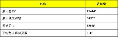 截至2008年1月8日本次大賽的官方網(wǎng)站(http://Design.ChinaBus.Info)的訪問量統(tǒng)計結果如下表6所示。