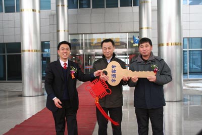 2008年2月25日上午九點,宇通大廈一樓廣場前彩旗飄飄,熱鬧紛繁,北京民航通力航空服務(wù)公司、北京空港開遠客運有限公司交車儀式暨北京民航首都機場三號航站樓奧運專用車下線儀式在這里隆重舉行。此次交付使用的車輛包括27輛專門為機場旅客運輸開發(fā)的機場專用巴士ZK6126HA和8輛ZK6107H,以及16輛具有世界領(lǐng)先技術(shù)的超級單胎機場擺渡車ZK6128HGD。北京民航通力航空服務(wù)公司總經(jīng)理李慶民、北京空港開遠客運有限公司總經(jīng)理史俊民、鄭州宇通客車股份有限公司副總經(jīng)理王文兵及宇通公司有關(guān)人員出席了交車儀式,王文兵副總經(jīng)理將具有象征意義的金鑰匙交到了李慶民和史俊民兩位總經(jīng)理的手中,交車儀式在禮花飛舞中圓滿結(jié)束,這也標(biāo)志著宇通客車正式批量進入首都機場,為機場工作人員和過港旅客提供客運服務(wù)。