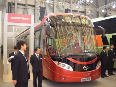 日前,首臺蘇州造大容量BRT客車現(xiàn)身2008世界客車博覽亞洲展覽會。此款型號為海格KLQ6180GQE3的18米城市客車,由蘇州金龍采用自主技術(shù)研制,標志著我國大容量BRT客車又有了新生代。