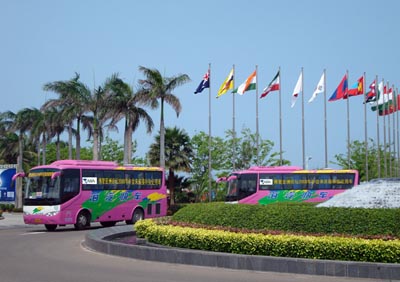 4月的海南,風(fēng)光旖旎,11日至13日,一年一度的博鰲亞洲論壇年會(huì)再次在這里舉行。國(guó)家主席胡錦濤在論壇年會(huì)開(kāi)幕式上發(fā)表主旨演講,10個(gè)國(guó)家的國(guó)家元首和政府首腦應(yīng)邀參加了年會(huì)前后的一系列活動(dòng)。不到一周的時(shí)間,胡錦濤主席和外國(guó)領(lǐng)導(dǎo)人舉行會(huì)談、會(huì)見(jiàn),出席博鰲亞洲論壇年會(huì),活動(dòng)密集、成果豐碩,為中國(guó)外交國(guó)事活動(dòng)留下具有獨(dú)特色彩的篇章。由“東風(fēng)汽車”旗下的東風(fēng)旅行車公司生產(chǎn)的“東風(fēng)金蓮花”牽手國(guó)際性會(huì)議,4輛“東風(fēng)金蓮花”客車成為2008博鰲論壇來(lái)賓接待指定用車,為參加本次會(huì)議的貴賓提供服務(wù)。