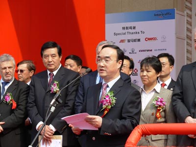 交通運(yùn)輸部副部長翁孟勇出席開幕式并致辭,北京市副市長趙鳳桐、總后軍交部部長趙占平、中國公路學(xué)會(huì)李居昌理事長、荷蘭駐華大使Rudolf Bekink、也門駐華大使阿卜杜勒.馬力克.穆阿里米、尼泊爾駐華大使塔卡.帕拉斯德.卡爾基及夫人,國家發(fā)展與改革委員會(huì)、鐵道路、科技部、公安部、財(cái)政部、中國遠(yuǎn)洋運(yùn)輸集團(tuán)總公司、中國交通建設(shè)集團(tuán)總公司、招商局集團(tuán)、中國石油天然氣總公司的有關(guān)領(lǐng)導(dǎo)及意大利、沙特阿拉伯王國、波蘭、蒙古等駐華使館官員也出席展會(huì)開幕式并參觀展覽。交通運(yùn)輸部各司局領(lǐng)導(dǎo)以及各省市交通廳局的領(lǐng)導(dǎo)或代表也參加了展會(huì)開幕式并參觀展會(huì)。