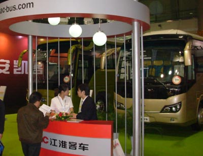 由交通部主辦、交通部科學(xué)研究院交通科技交流中心和北京市貿(mào)促會(huì)北京國(guó)際展覽中心承辦的“第九屆國(guó)際公路水運(yùn)交通技術(shù)與設(shè)備展覽會(huì)”于2008年4月24日在北京展覽館舉行,江淮客車帶領(lǐng)“星運(yùn)”及“好運(yùn)86”兩款新品亮相展會(huì)現(xiàn)場(chǎng),江淮傾心打造的客運(yùn)、團(tuán)體新品及簡(jiǎn)約舒適的展臺(tái)設(shè)計(jì)成為全場(chǎng)矚目的焦點(diǎn)。